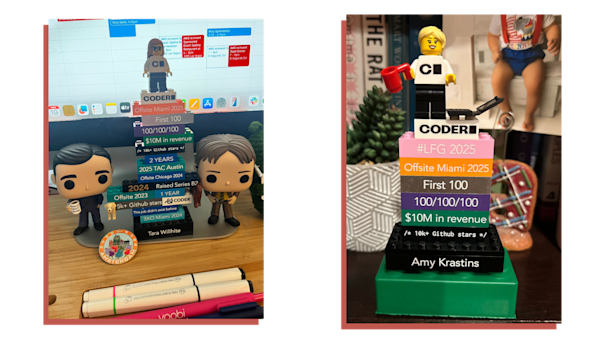 The program has turned abstract milestones into physical trophies. In a remote world where work happens on screens, Coder employees now have growing stacks of bricks on their desks representing their tenure and impact.
